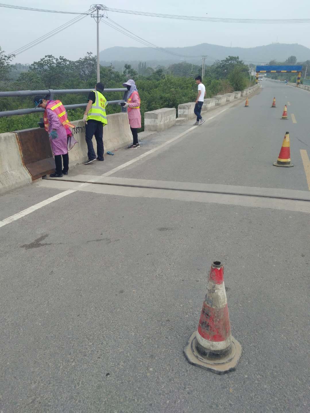 為確保管養(yǎng)道路安全暢通、路容美觀,并以良好、整潔的公路環(huán)境迎接干線公路2018年河南省交通部檢查,養(yǎng)護(hù)公司經(jīng)過(guò)精心準(zhǔn)備,于5月5日組織9名養(yǎng)護(hù)人員對(duì)G223滎陽(yáng)段楊廟橋的護(hù)欄和隔離墩進(jìn)行全面的提升整治,形成迎檢與日常養(yǎng)護(hù)工作齊頭并進(jìn)的良好格局,確保迎檢工作圓滿收官。