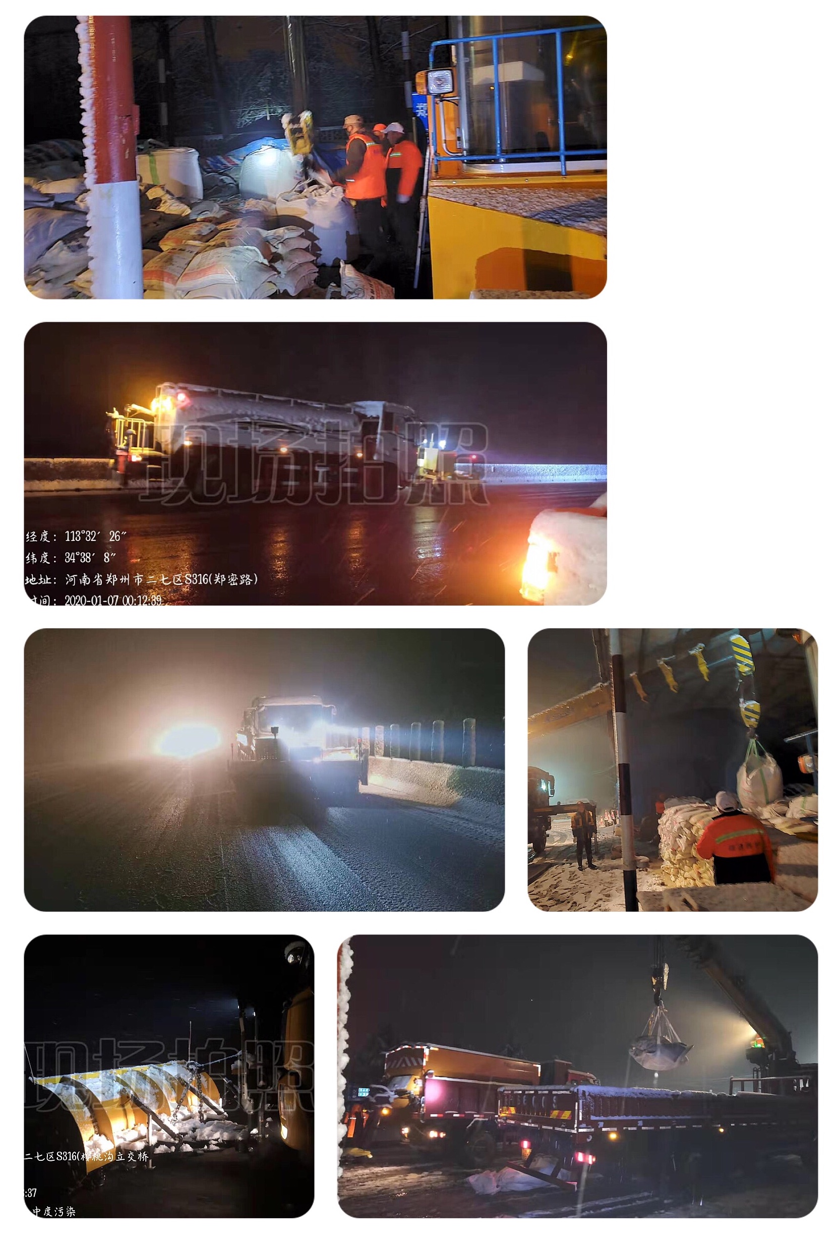 2020年1月6日晚,我市突降暴雪。根據(jù)降雪情況,各路段負(fù)責(zé)人立刻奔赴第一線,緊急啟動《公路除雪應(yīng)急預(yù)案》。養(yǎng)護(hù)人員按照既定工作方針,調(diào)集除雪車輛和人員,在對重點防滑路段、橋梁及事故多發(fā)區(qū)進(jìn)行了融雪劑的撒布,全力開展公路除雪防滑工作。此次行動共出動巡查車6輛、撒布車4臺、雪鏟車4臺、雪滾2臺、自吊2臺,使用融雪劑15噸,出動養(yǎng)護(hù)人員60人,確保了轄區(qū)內(nèi)公路無積雪、積冰。