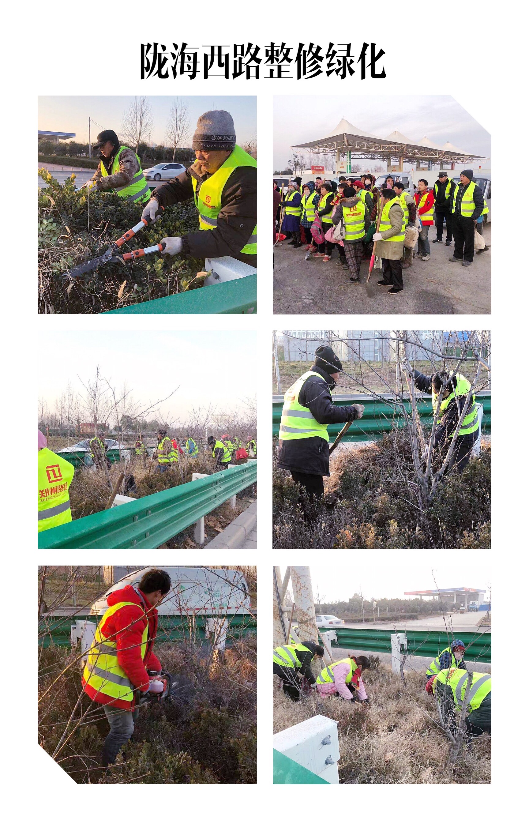 隴海西路位于鄭州與滎陽交接處,是連接城市的重要出入市口,綠化帶的規(guī)劃對于公路而言有著極其重要的意義和作用,不僅是城市綠化景觀、環(huán)境保護(hù)的需要,而且從一定的角度講還可以阻擋快車道和慢車道間的灰塵擴(kuò)散。為進(jìn)一步提升所轄公路路域環(huán)境,養(yǎng)護(hù)部每日組織50人員將綠化帶內(nèi)枯株、死株、雜草、垃圾進(jìn)行了拉網(wǎng)式的徹底清理,對綠化帶內(nèi)黃土裸露部位鋪設(shè)防塵網(wǎng),同時對綠化帶護(hù)欄進(jìn)行清洗和維修。目前已完成約350米的綠化帶修整。整治后的各路段綠化帶將煥然一新,出行品質(zhì)得到了整體提升,路域顏值得以全面刷新。