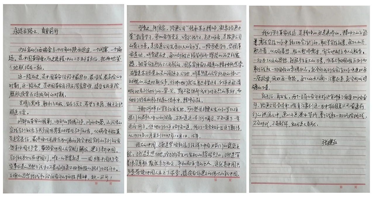 三是尋找初心凝聚路通力量。在紅色家書的課堂上,公司黨委副書記秦舸向同志們提出了三個發(fā)人深省的問題:我們從哪里來?我們到哪里去?我們要做什么?通過這些天的深度學(xué)習(xí),大家也都更加清楚的知道我們黨是從哪里來的?那么作為路通人,路通是怎么來的?2006年,養(yǎng)護(hù)體制改革時,路通公司順應(yīng)而生。公司成立之初從無資產(chǎn)、無資質(zhì)、無市場的三無虧損,到自我造血扭虧為盈,再到現(xiàn)階段的穩(wěn)步良性發(fā)展,期間所取得的成就,離不開公司骨干力量和黨員模范的帶頭引領(lǐng)。而我們路通未來會走向哪里,取決于我們現(xiàn)階段要怎么做。當(dāng)前,后疫情時代企業(yè)面臨著復(fù)雜多變的外部環(huán)境,在生存受到較大挑戰(zhàn)的關(guān)鍵時刻,公司黨委克服經(jīng)濟(jì)壓力,組織近200名黨員和先進(jìn)工作者到瑞金重溫黨的歷史,再走長征路,對我們的心靈是一次洗禮,對我們下步工作如何做更是一種啟發(fā)。當(dāng)年紅軍第五次圍剿失敗后,為擺脫國民黨軍隊的包圍追擊,被迫實行戰(zhàn)略性轉(zhuǎn)移,退出中央根據(jù)地進(jìn)行長征,長征取得了勝利,中國革命也迎來了新的局面?,F(xiàn)在當(dāng)我們生存受到挑戰(zhàn)的時候,也要汲取蘇區(qū)紅軍力量,將他們百折不撓、自強不息的精神帶回到本職崗位中,并緊緊圍繞在公司黨委周圍,團(tuán)結(jié)一致,擔(dān)當(dāng)作為,迎難而上,突出重圍,為公司高質(zhì)量穩(wěn)健發(fā)展貢獻(xiàn)力量!