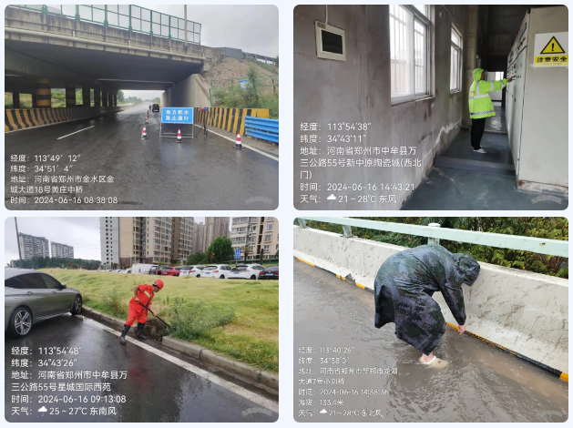 上級領(lǐng)導(dǎo)高度重視防汛工作,趕赴一線檢查指導(dǎo)。鄭州市公路事業(yè)發(fā)展中心養(yǎng)護技術(shù)處處長侯林杰在路通養(yǎng)護分公司副經(jīng)理李宗基的陪同下前往小劉橋進行防汛搶險工作檢查指導(dǎo),查看防汛重點區(qū)域,及時掌握現(xiàn)場雨情、汛情、路況等,詳細了解當(dāng)前防汛搶險工作開展情況,督促落實防汛措施。