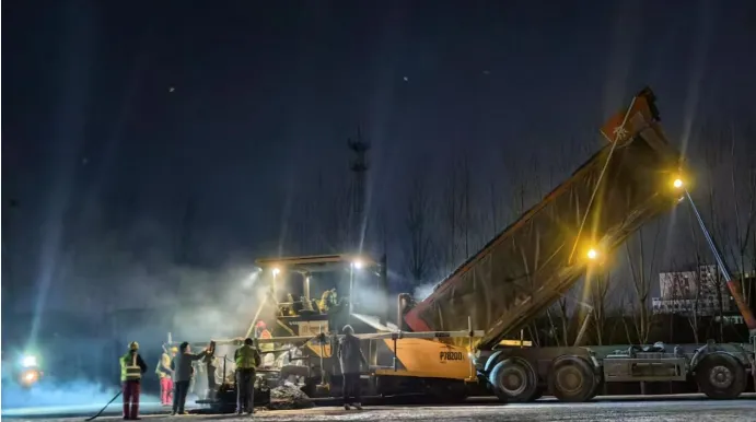 數九隆冬寒意濃。1月10日深夜,國道107線東移開封境(炎黃大道至許昌交界)新建工程施工項目瀝青攤鋪工程正上演了一場時間與速度的激烈角逐。在這寒氣籠罩大地的時刻,項目部全體參建者們,采取“白加黑”“五加二”的工作模式,奮戰(zhàn)在施工一線,將全部身心投入到搶工期的“戰(zhàn)斗”中,為此次攤鋪任務順利完成開啟了“加速鍵”。